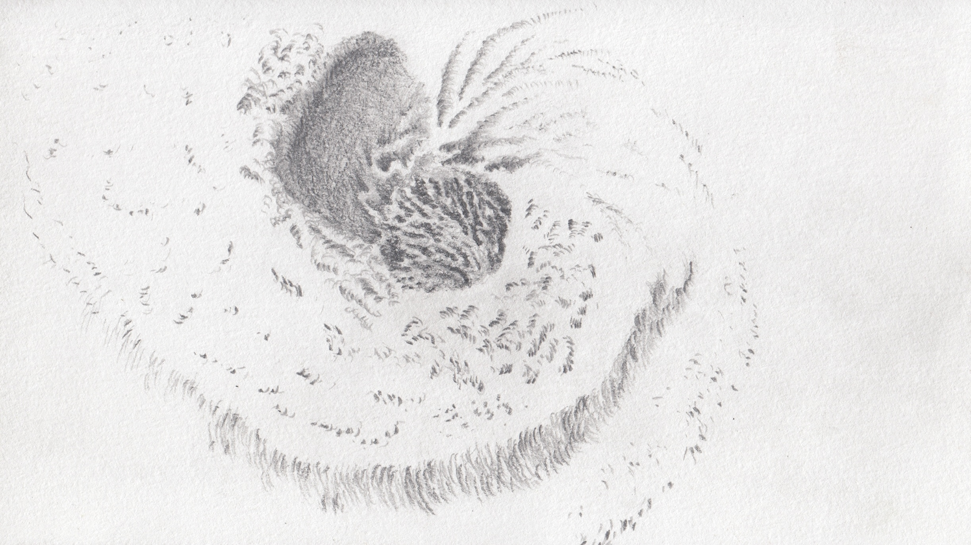 Grafite sobre papel algodão matizado com nanquim, 12 x 21 cm.